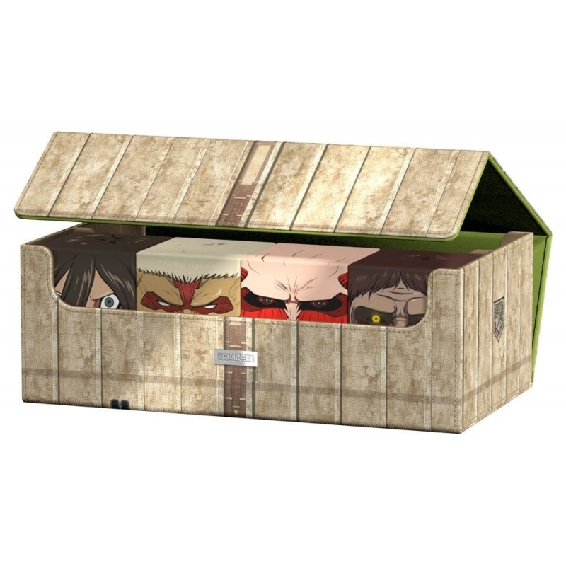 Descubre la Caja de Coleccionista Attack on Titan - Distrito Shiganshina, el accesorio esencial para los entusiastas del anime y los coleccionistas de cartas. Este producto licenciado oficialmente captura la esencia de Shiganshina con su impresionante impresión a color que evoca los icónicos muros de la serie. Diseñada para albergar hasta ocho Squaroes o entre 900 y 1.000 cartas coleccionables (con fundas), esta caja es perfecta para almacenar y proteger tus tesoros de TCG.
