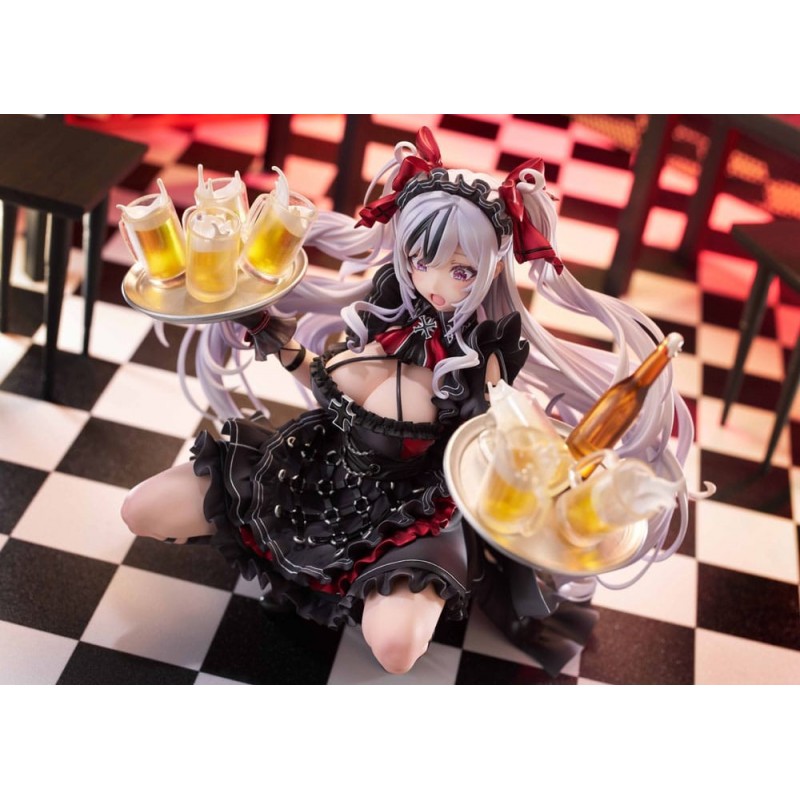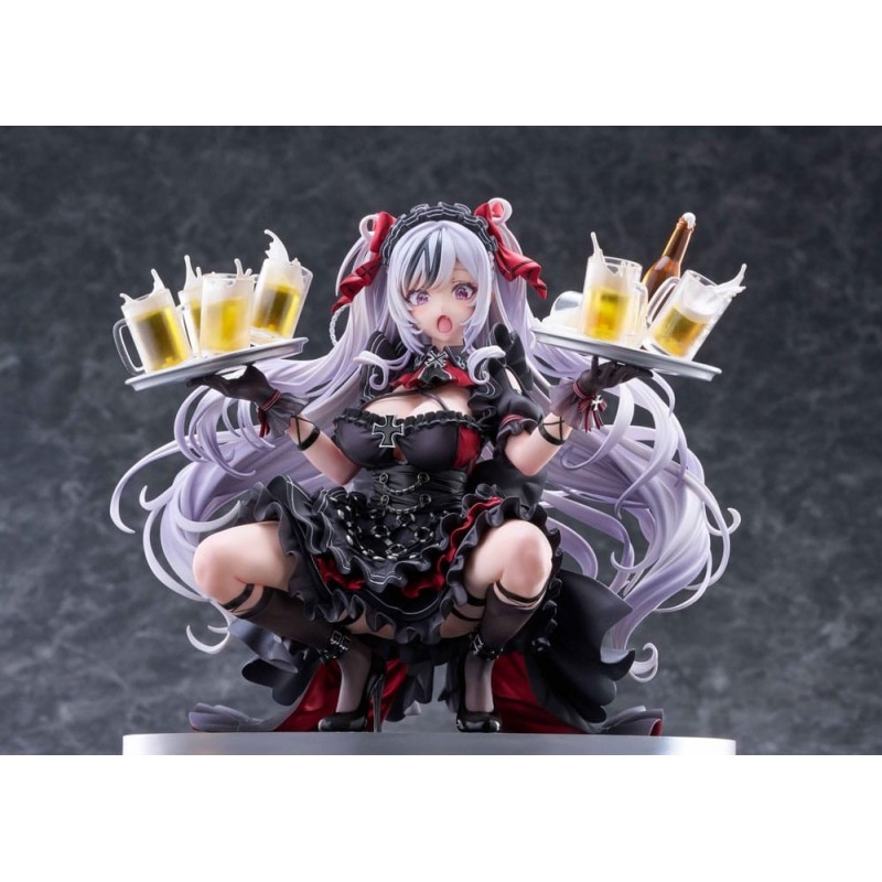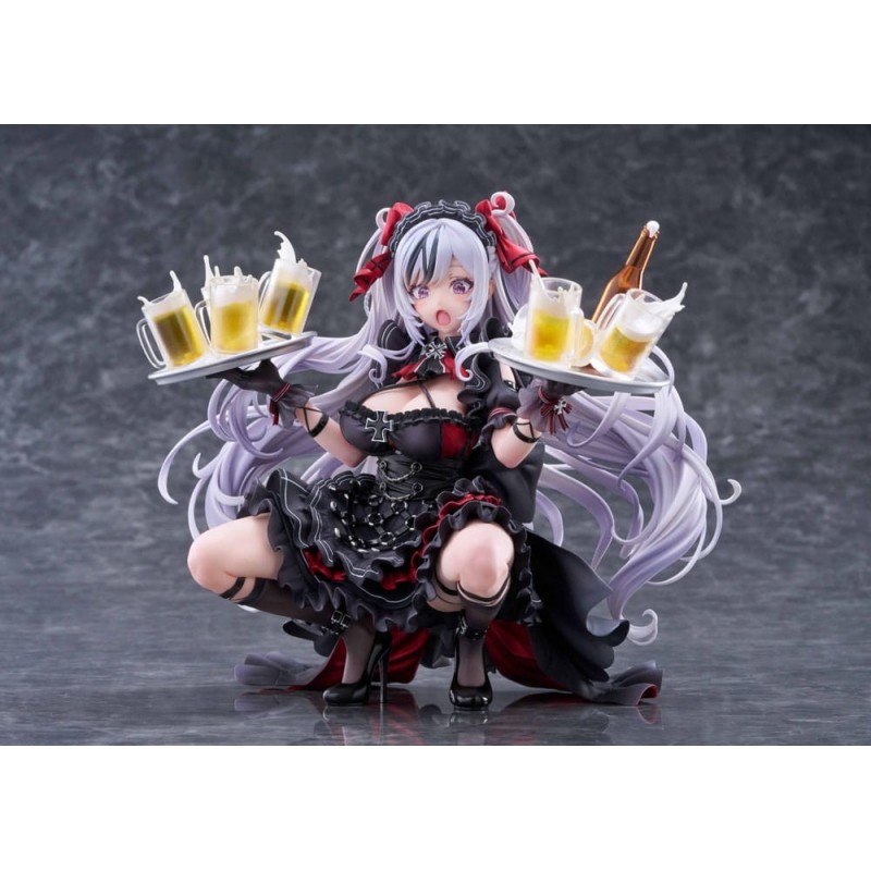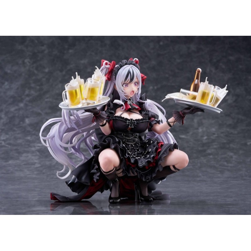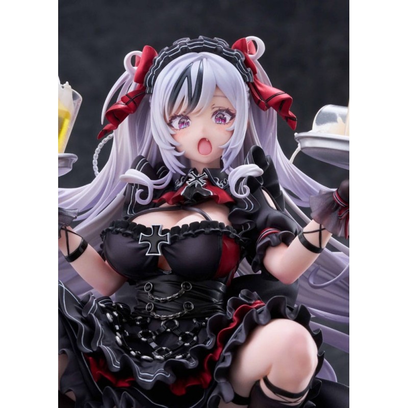 La Estatua PVC 1/7 Elbe: Time to Show Off del popular anime Azur Lane es una pieza coleccionable de exquisito detalle. Con una altura de 16 cm, esta figura a escala 1/7 está fabricada en PVC de alta calidad por el reconocido fabricante Golden Head. El personaje de Elbe está representado con un elegante vestido negro adornado con lazos rojos, mientras sostiene bandejas con bebidas espumosas, mostrando una expresión vivaz y cautivadora.