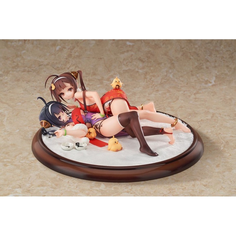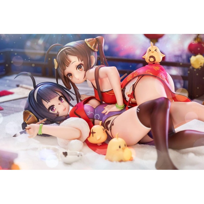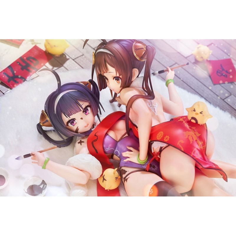 Explora el universo de Azur Lane con esta exquisita estatua de PVC a escala 1/7 de los personajes Ping Hai y Ning Hai. Fabricada con precisión por Hobby Max, esta estatua mide aproximadamente 12 cm y captura cada detalle de los personajes con elegancia y vivacidad. El conjunto incluye un soporte decorativo, y cada personaje se muestra en una pose dinámica, vistiendo atuendos detalladamente diseñados con motivos tradicionales y vivos colores.