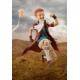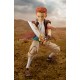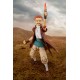 Con un tamaño aproximado de 13 cm, esta figura captura a Isidro en todo su dinamismo. Viste pantalones beige, una camiseta azul y un abrigo largo marrón, completado con detalles como un pañuelo blanco y botas marrones. Su cabello naranja y expresión decidida le otorgan un toque distintivo. Además, la figura incluye una espada y accesorios que permiten recrear diversas poses de acción.