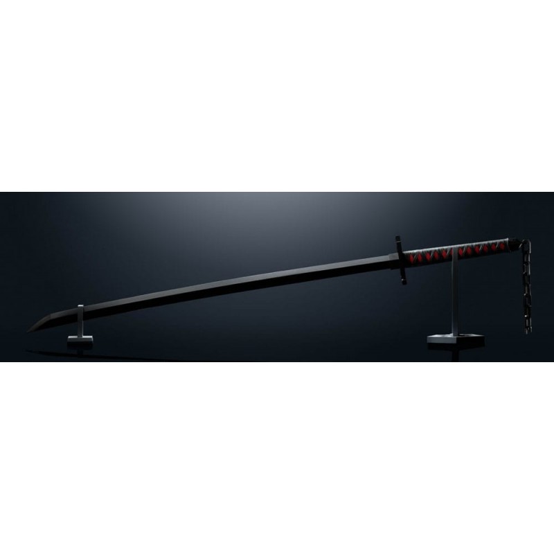 El diseño de la espada destaca por su hoja negra con detalles rojos en el mango, que le da un aspecto auténtico y llamativo. Además, está equipada con funciones de sonido, proporcionando una experiencia aún más inmersiva para los coleccionistas y fans. Es necesario adquirir 2 pilas AAA para activar estas funciones (no incluidas). Fabricada en metal, PVC y ABS.