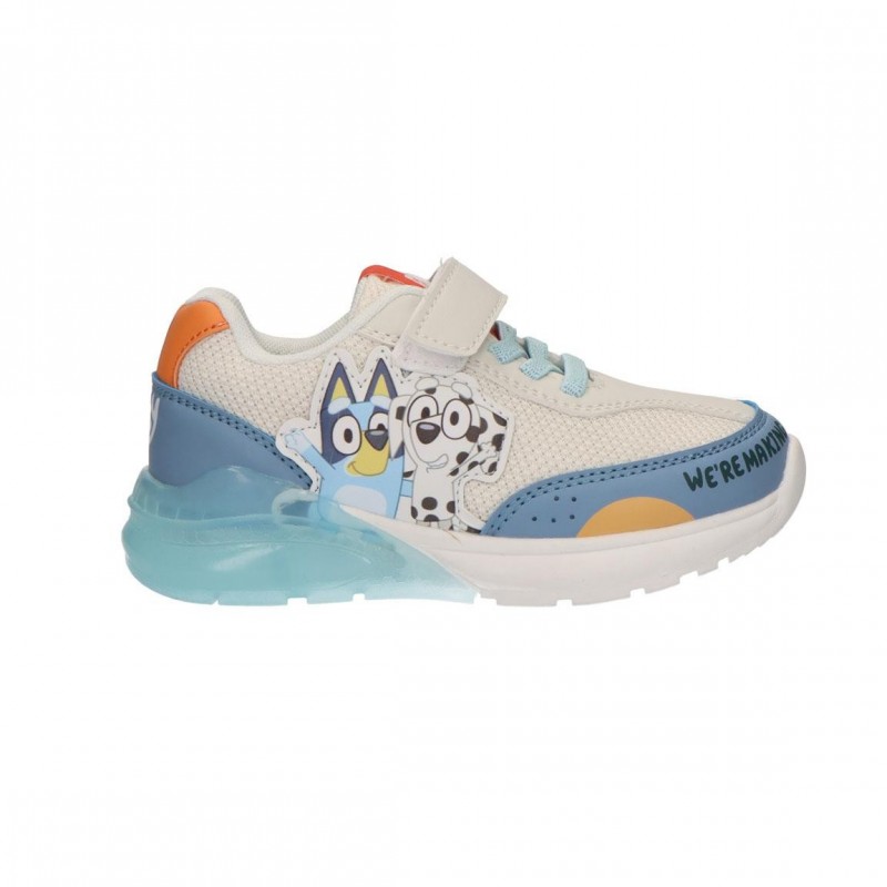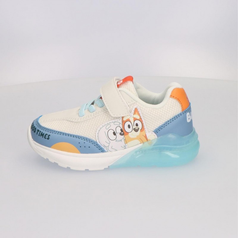 Descubre la deportiva infantil Bluey, el calzado perfecto para los pequeños fans de la popular serie de televisión. Estas deportivas destacan por su diseño colorido, con predominio del blanco y detalles en azul, naranja y celeste. Confeccionadas en PU y poliéster, ofrecen una gran durabilidad y comodidad.