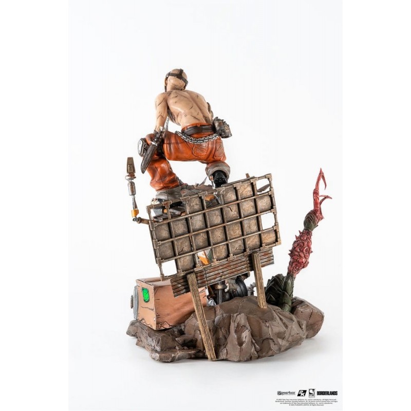 Además, incluye un exclusivo soporte de tarjetas de armas de Borderlands. Esta figura a escala 1/6 está licenciada por 2K Games y es una adición imprescindible para cualquier colección de videojuegos.