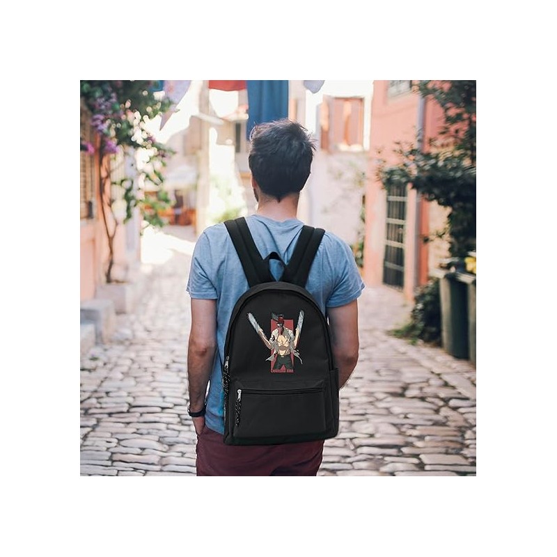 Descubre la mochila Chainsaw Man, un accesorio imprescindible para los entusiastas del anime. Esta mochila negra presenta un impactante diseño con una imagen vibrante del personaje central, capturando la esencia única de la serie. Con un bolsillo frontal práctico y un amplio compartimento de almacenamiento, esta mochila es ideal para llevar todo lo necesario en tu día a día.