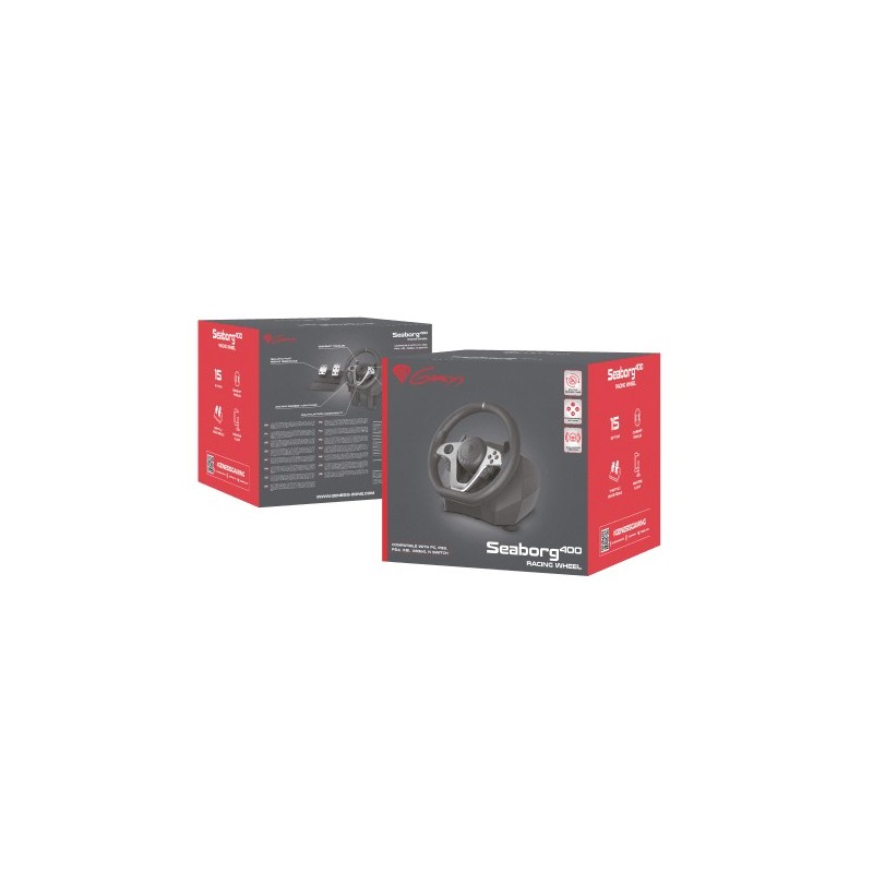 El volante y pedales Genesis Seaborg 400 es la elección perfecta para los entusiastas de los videojuegos de carreras. Con un diseño elegante en negro y plata, este set ofrece una experiencia de conducción realista gracias a su margen de giro máximo de 900° y la función de vibraciones que simulan cada curva y giro. Equipado con 15 botones, te permite un control absoluto en cada carrera.