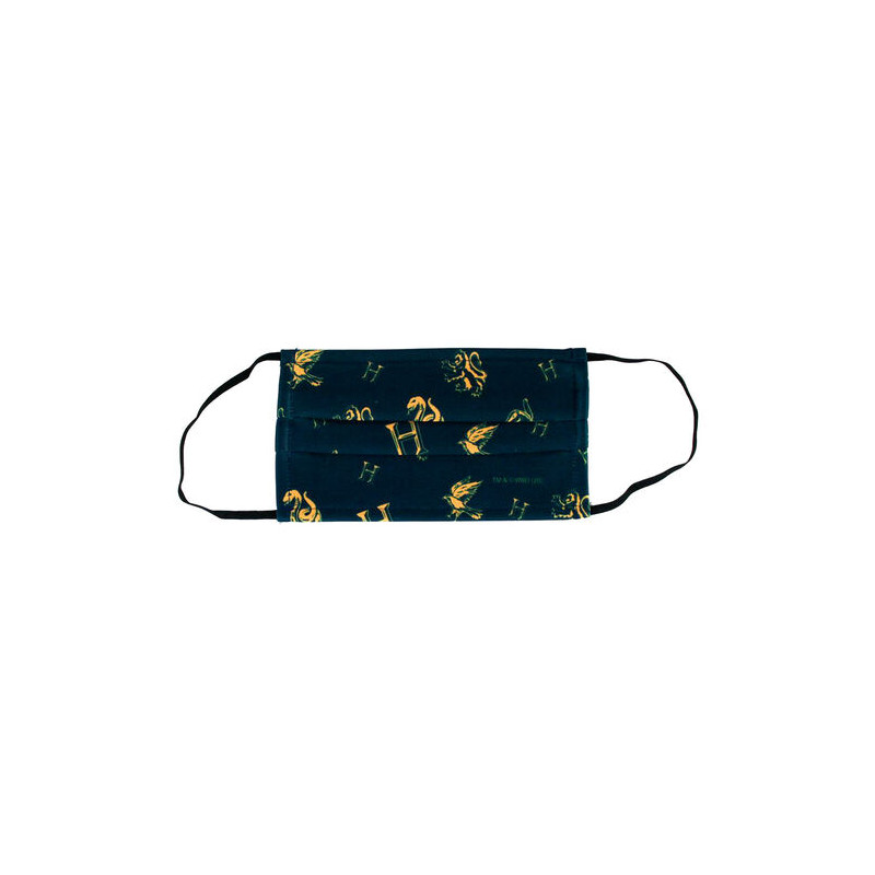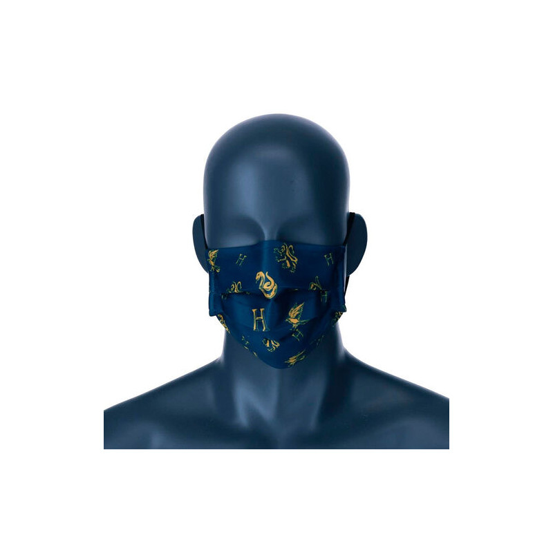 Y ya que tenemos que llevar mascarilla para protegernos a nosotros y a los demás...al menos hagámoslo con un poquito de estilo, ¿no? Con el elegante fondo azul oscuro y un montón de iconos de la saga Harry Potter en tonos dorados resulta muy muy elegante
