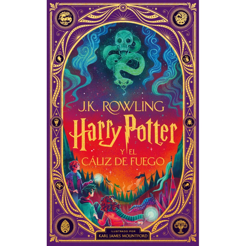 Descubre la magia de Harry Potter y El Cáliz de Fuego en el cuarto tomo que anteriormente ilustraba Minalima. Este volumen, diseñado por Karl James Mountford, cuenta con un impactante estilo gráfico que se alinea perfectamente con los libros anteriores de la colección.
