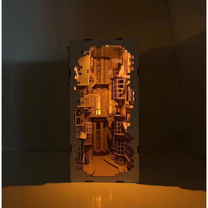 Descubre la magia del Callejón Diagon con esta impresionante maqueta de Book Nook. Este producto oficial de Harry Potter, creado por Revell, es un precioso mundo en miniatura hecho de madera, ideal para los amantes de los libros y la magia. Con unas medidas de 18 x 11 x 23 cm, el diseño incluye intrincados detalles iluminados por luces LED, lo que añade un toque encantador a cualquier estante de libros. Ten en cuenta que requiere 2 baterías LR03, no incluidas.