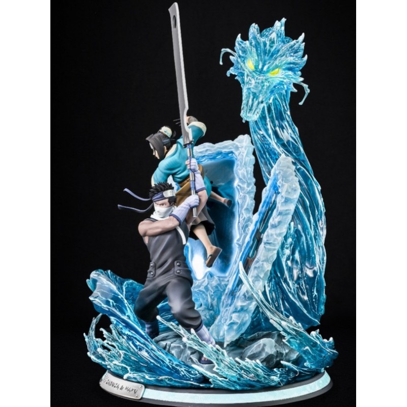 Descubre la impresionante estatua de Zabuza y Haku de la serie "Naruto", creada por Tsume Arts para la colección HQS. Esta estatua a escala 1/8 mide 47x33x35 cm y está elaborada en resina y PVC, destacándose por su nivel de detalle.