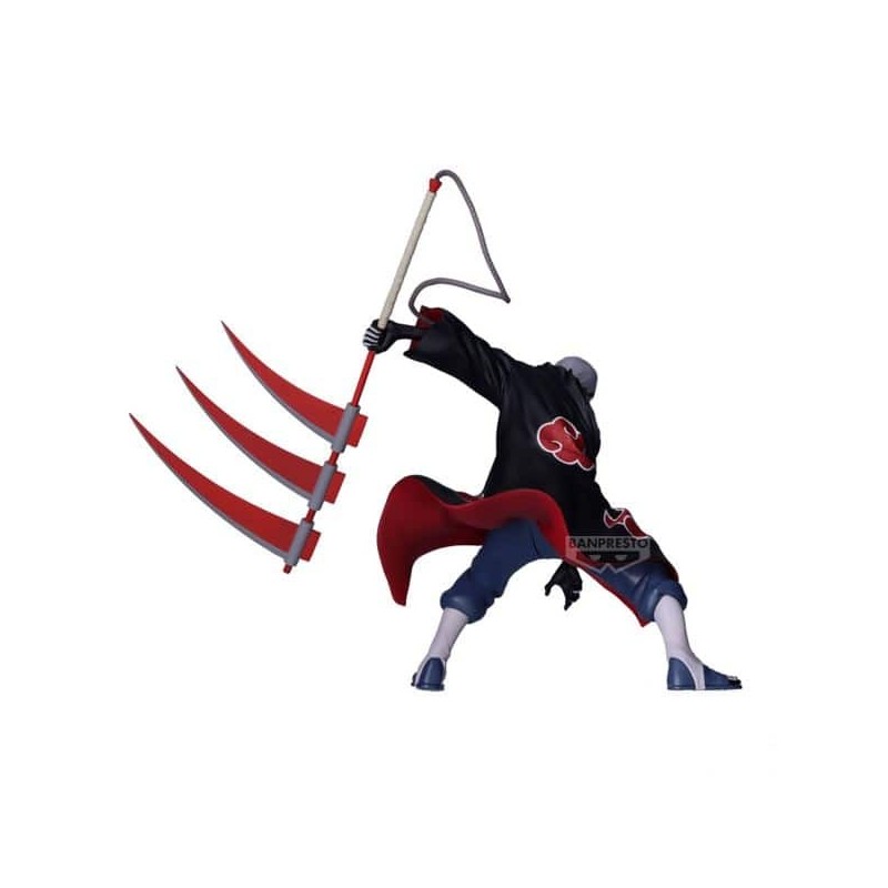 La figura de Hidan de la serie Naruto Shippuden se une a la colección Vibration Stars de Banpresto. Con una altura de 13 cm y fabricada en PVC y ABS, esta pieza captura al personaje en una posición dinámica con su icónica guadaña de tres hojas. Diseñada con gran detalle, esta figura pre-pintada incluye una base que asegura una fácil exposición.