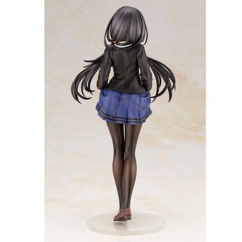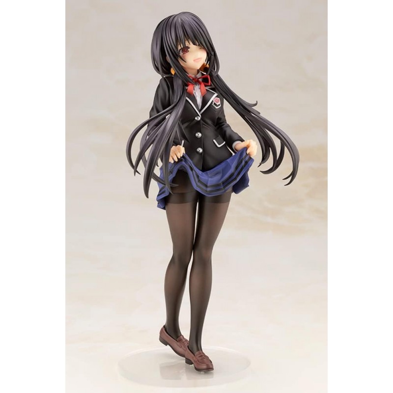 Hecha en PVC de alta calidad, la figura captura a Kurumi con su vestimenta característica: un conjunto escolar negro con detalles en azul y una corbata roja. Su larga cabellera negra y su expresión delicada han sido esculpidas con gran precisión, aportando un realismo que se aprecia en cada ángulo.