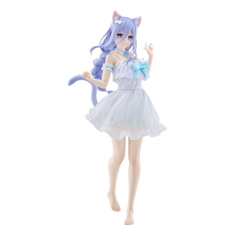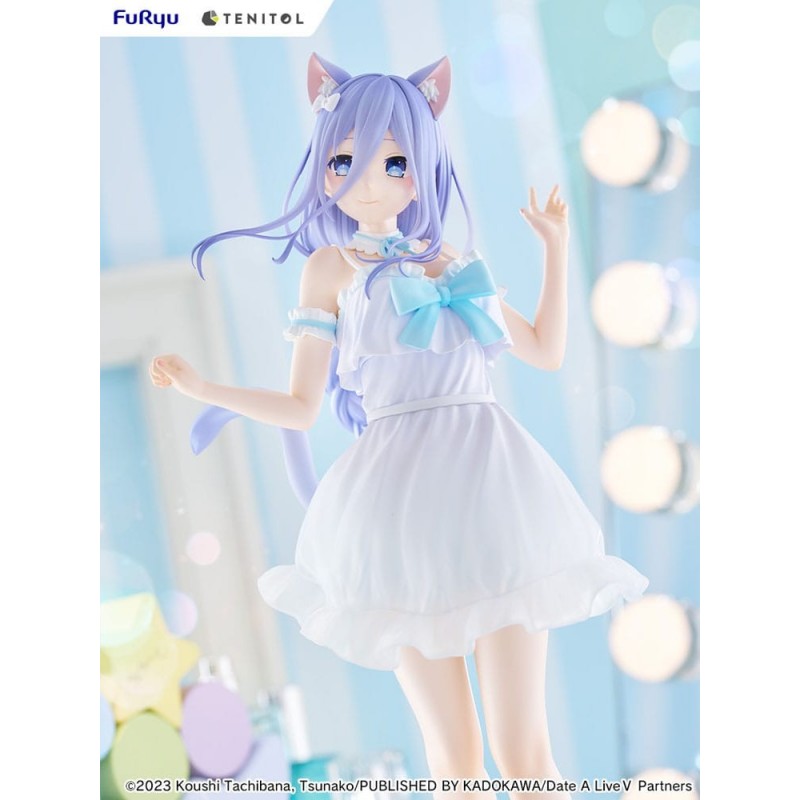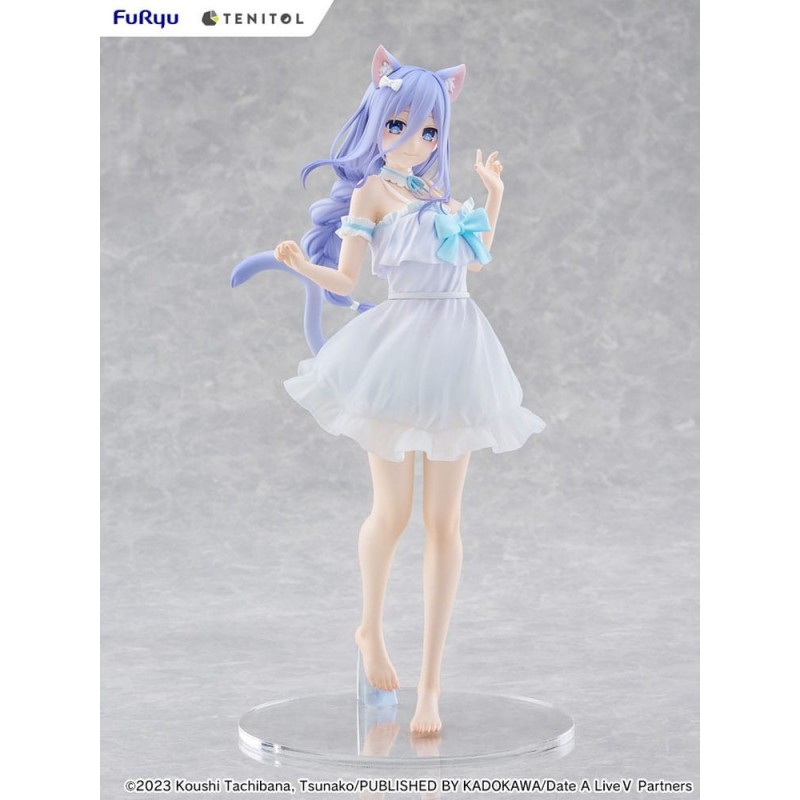 La Estatua PVC Mio Takamiya de 30 cm captura la esencia encantadora de este personaje de Date A Live V. Fabricada por Furyu, esta figura presenta a Mio con un hermoso vestido blanco adornado con un lazo celeste. Sus orejas de gato y cola añaden un toque adorable, mientras que su cabello largo y lila cae en una trenza elegante.