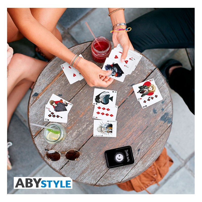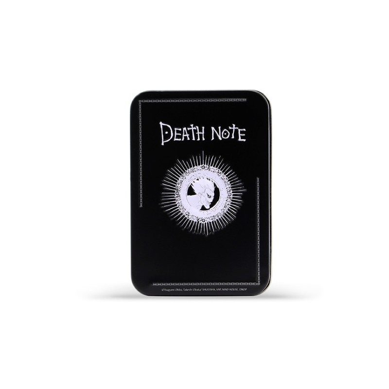 Con esta baraja de cartas de Death Note, sumérgete en el intrigante mundo del anime mientras disfrutas de tu juego de cartas favorito. Este mazo de 54 cartas presenta diseños únicos inspirados en los personajes icónicos de la serie. Cada carta está ilustrada con gran detalle, haciendo de esta baraja un artículo imprescindible para cualquier fan de Death Note. Viene en una elegante caja de metal negra con el logotipo oficial, que no solo protege las cartas, sino que también añade un toque de estilo a tu colección. Al ser un producto con licencia oficial, garantiza calidad y autenticidad.
