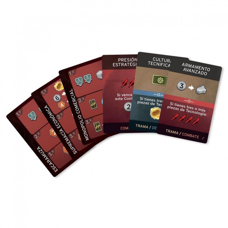 El contenido incluye un suplemento de tablero de la CHOAM, un tablero de Ix, 18 piezas de tecnología, 12 piezas de madera para jugadores, más de 65 cartas, 6 líderes y fichas de cartón de Detector. Todo lo que necesitas para una experiencia de juego inmersiva que puede extenderse de 1 a 2 horas para 1 a 4 jugadores, recomendado para mayores de 13 años.