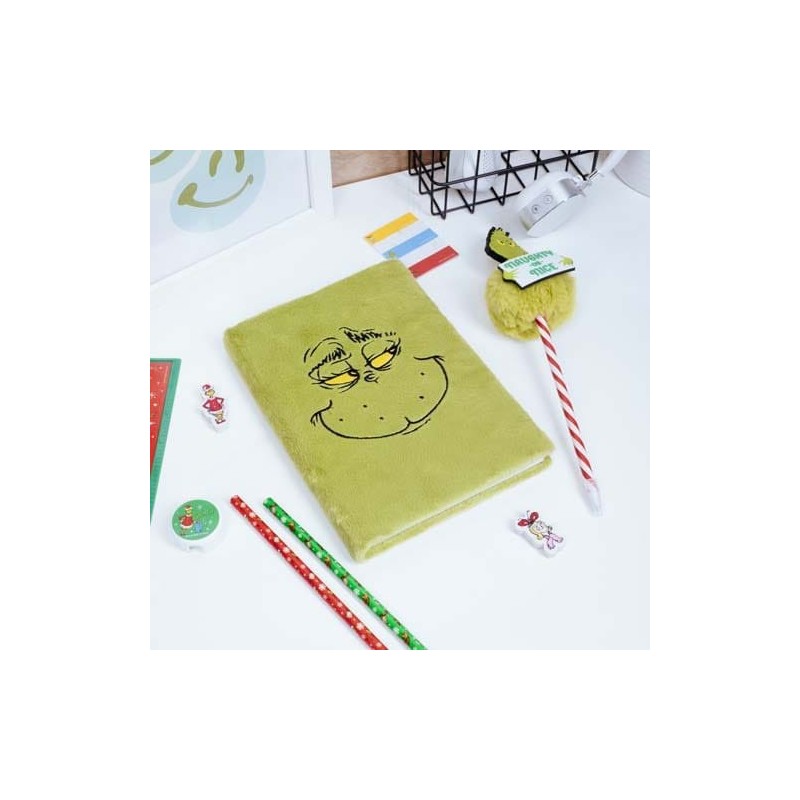 Descubre el Cuaderno A5 El Grinch, un artículo de papelería único que combina funcionalidad y originalidad. Con una cubierta aterciopelada verde que representa la icónica expresión del Grinch, este cuaderno es más que un simple diario: es una pieza de conversación. Con 160 páginas rayadas, es perfecto para tomar notas, diarios o listas de tareas.