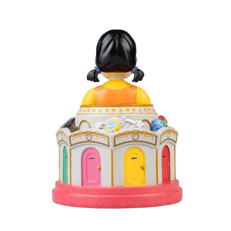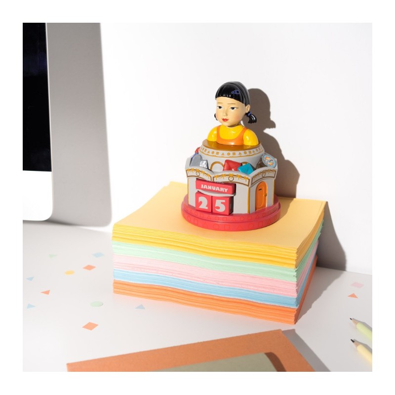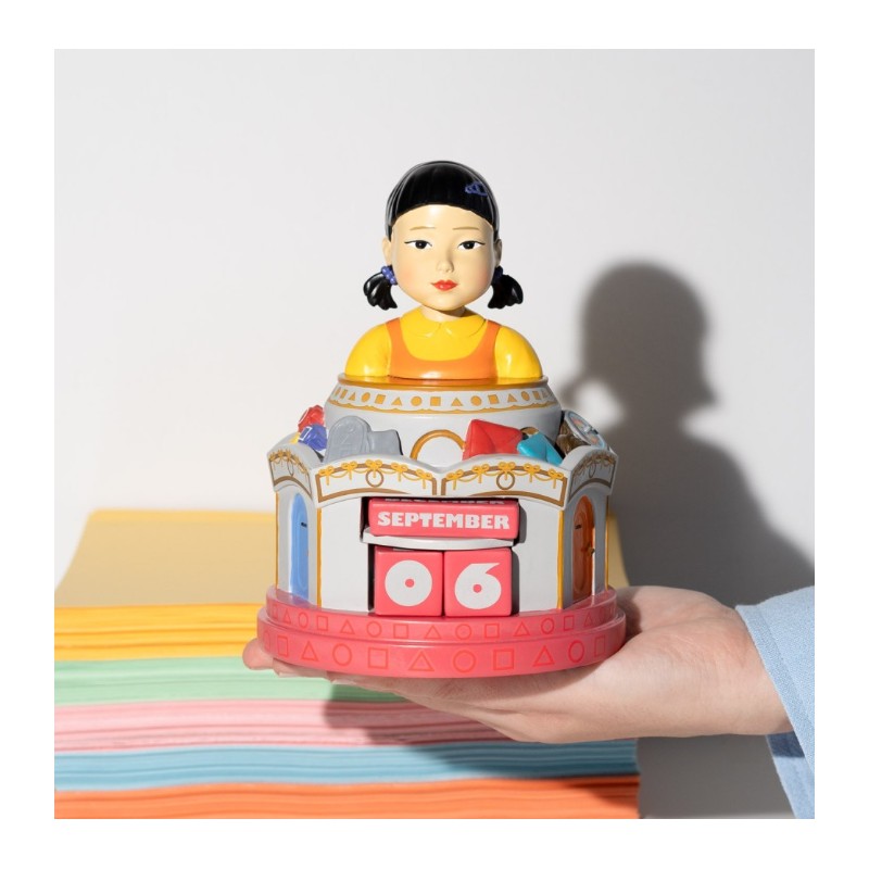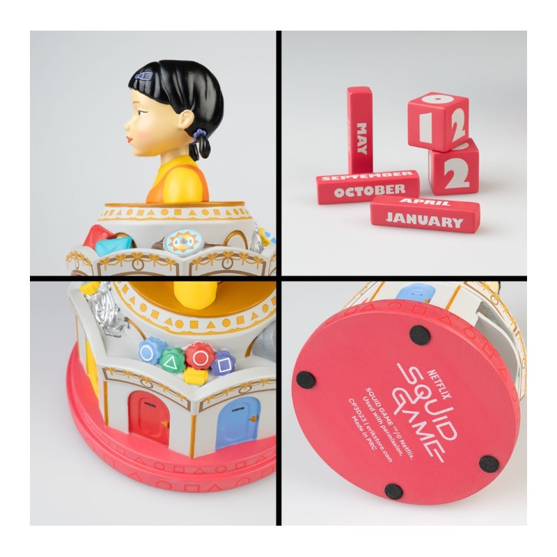 Perfecto para los amantes de El Juego del Calamar, este calendario perpetuo 3D es una joya de coleccionista. Fabricado en resina de alta calidad, modelado en relieve y pintado a mano, su diseño incluye la emblemática muñeca de la serie. Cada detalle es minuciosamente trabajado, desde las puertas de colores hasta los símbolos icónicos del juego.