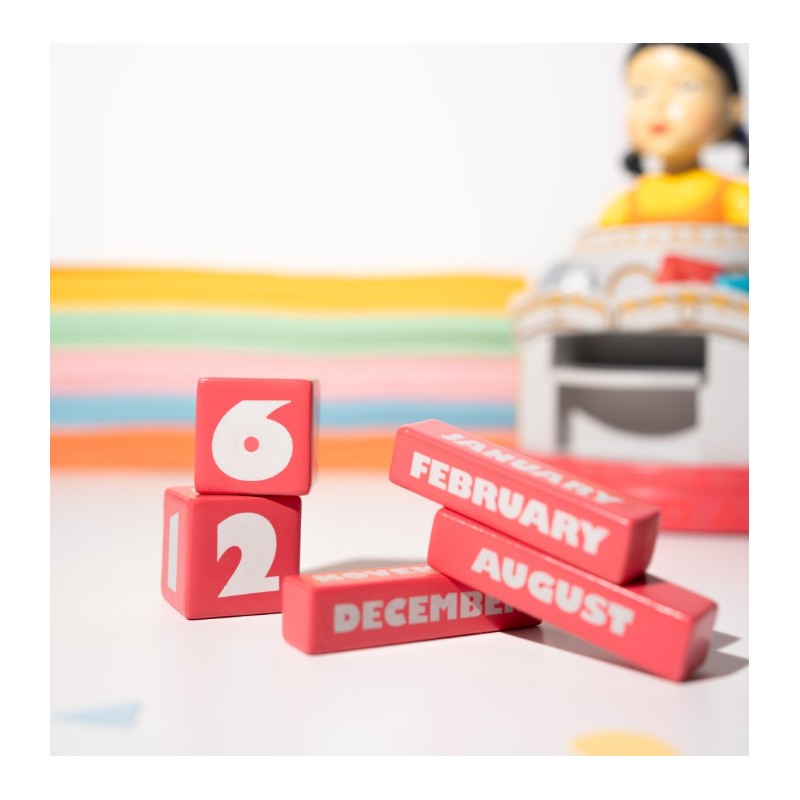 El calendario cuenta con dos bloques para los días y tres para los meses, permitiendo configuraciones infinitas para cada fecha del año. Este sistema se mantiene útil y funcional de por vida, haciendo de este producto una inversión inteligente.