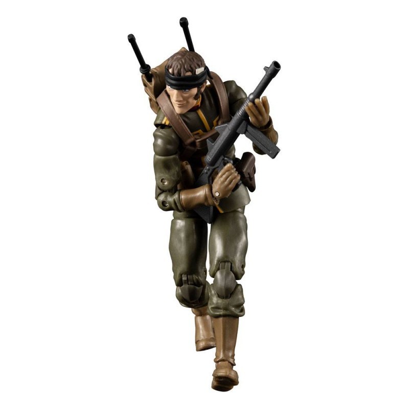 La Figura GMG del Principado de Zeon con una motocicleta es una pieza única para los fans de Mobile Suit Gundam. Esta figura de 10 cm, fabricada por Megahouse, está hecha de PVC de alta calidad y cuenta con bases y accesorios, lo que la hace ideal tanto para la exhibición como para el coleccionismo. El detallado diseño incluye un soldado del Principado de Zeon en uniforme, completo con una motocicleta exclusiva de color verde militar.