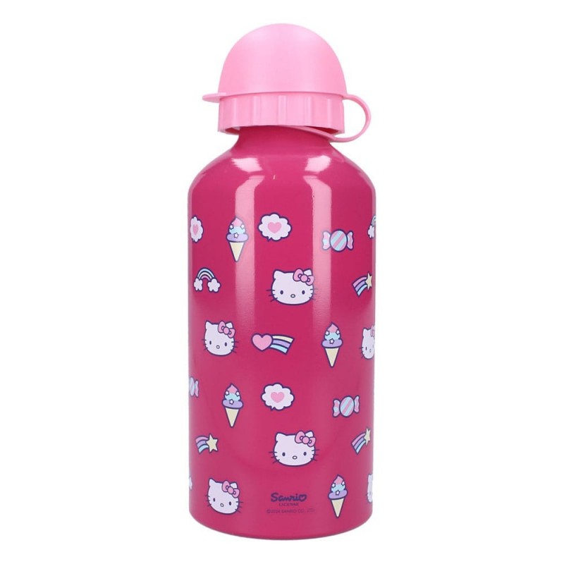 La botella Hello Kitty de aluminio con capacidad para 500 ml es el accesorio perfecto para los fans de la icónica gatita. Con un diseño encantador, muestra a Hello Kitty en un fondo rosa vibrante con detalles de arcoíris y helado. Fabricada en aluminio, es ligera y duradera, ideal para el uso diario.