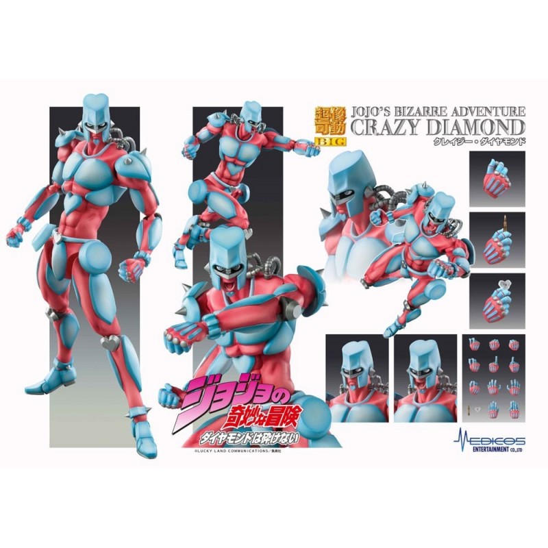 Descubre la figura articulada Crazy Diamond de 22 cm, inspirada en el famoso manga JoJo's Bizarre Adventure. Fabricada por Medicos Entertainment, esta figura destaca por su impresionante diseño y colores vibrantes en azul y rojo. Sus articulaciones permiten una amplia gama de poses dinámicas, haciendo de esta figura un elemento esencial para cualquier colección.