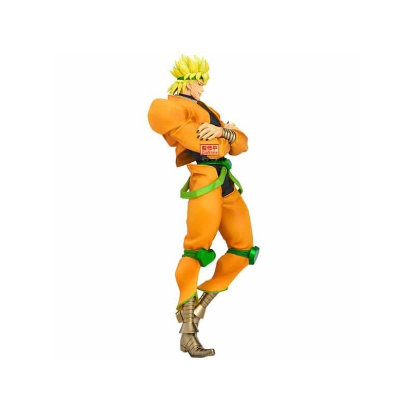 Diseñada por Banpresto, esta figura combina calidad y detalle con gran fidelidad al personaje original. Su diseño icónico reproduce con precisión la estética de Dio en Stardust Crusaders, con una escultura cuidadosamente elaborada y pintura detallada que resalta su actitud arrogante y desafiante.