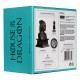 El embalaje, en un elegante tono turquesa, tiene una insignia metalizada al frente que simboliza el escudo de la Casa Targaryen, añadiendo un toque de sofisticación. Con medidas de 16,9 x 16,9 x 11,5 cm y un peso de 365 gramos, esta caja coleccionable es un artículo de lujo que cualquier seguidor de la saga desearía tener.