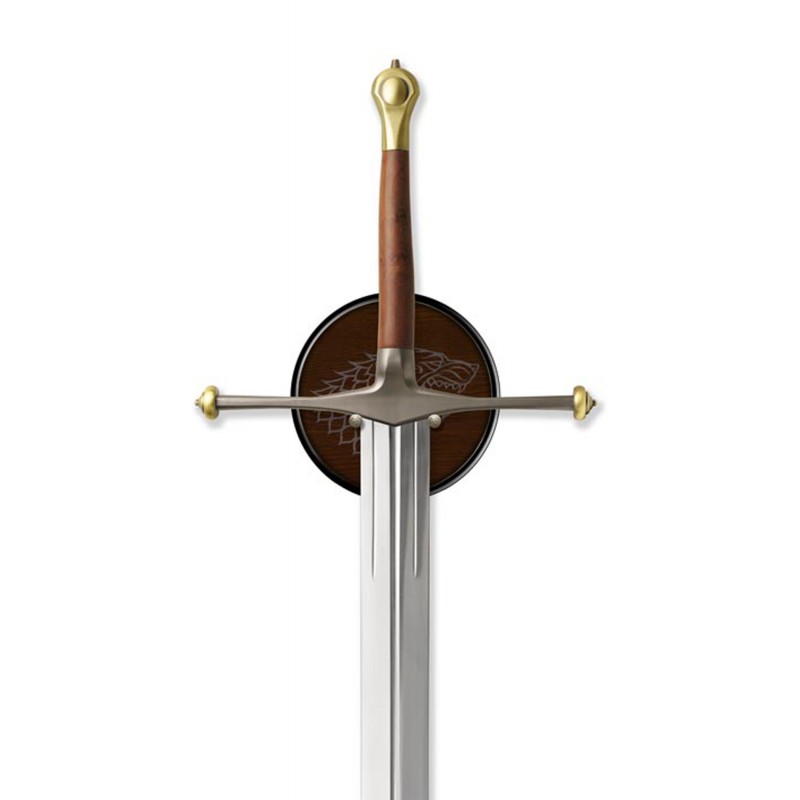 Limitada a solo 2500 piezas, cada espada está serializada e incluye un certificado de autenticidad y una placa de exposición de madera con un motivo del lobo huargo, el emblema de la Casa Stark. Esta es una pieza de colección que no querrás perderte.