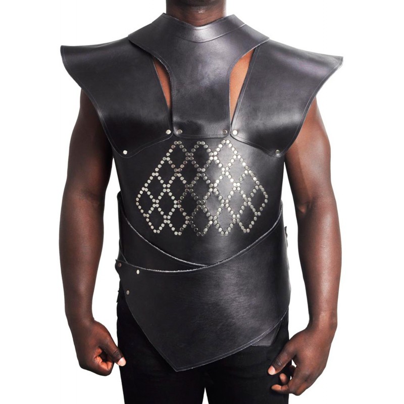 Hecha de cuero genuino, refleja fielmente el diseño usado en la serie, con sus emblemáticas tachuelas en patrón geométrico. Limitada a solo 500 unidades y acompañada de un certificado de autenticidad, esta armadura es obra de Valyrian Steel, ideal para cualquier coleccionista apasionado.