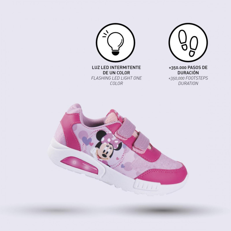 Una característica destacada de la Deportiva Minnie es su suela de Pvc, la cual brinda una excelente tracción y resistencia al desgaste. Esto permite que los niños puedan jugar y correr con total confianza, sin preocuparse por resbalones o caídas. Además, esta divertida zapatilla cuenta con el añadido de luces en la suela, las cuales se iluminan con cada paso, creando un efecto mágico y sorprendente para los pequeños deportistas.