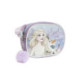 El bolso también incluye un encantador pompón en un tono lila suave que pende de un lateral, añadiendo un toque juguetón. La correa ajustable, decorada con las inscripciones de Anna y Elsa, asegura un ajuste cómodo y seguro para todas las edades.