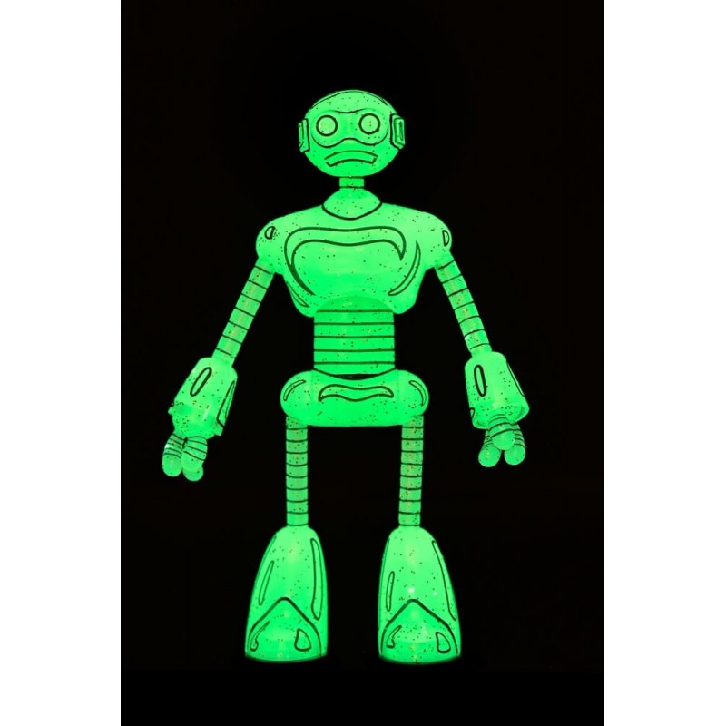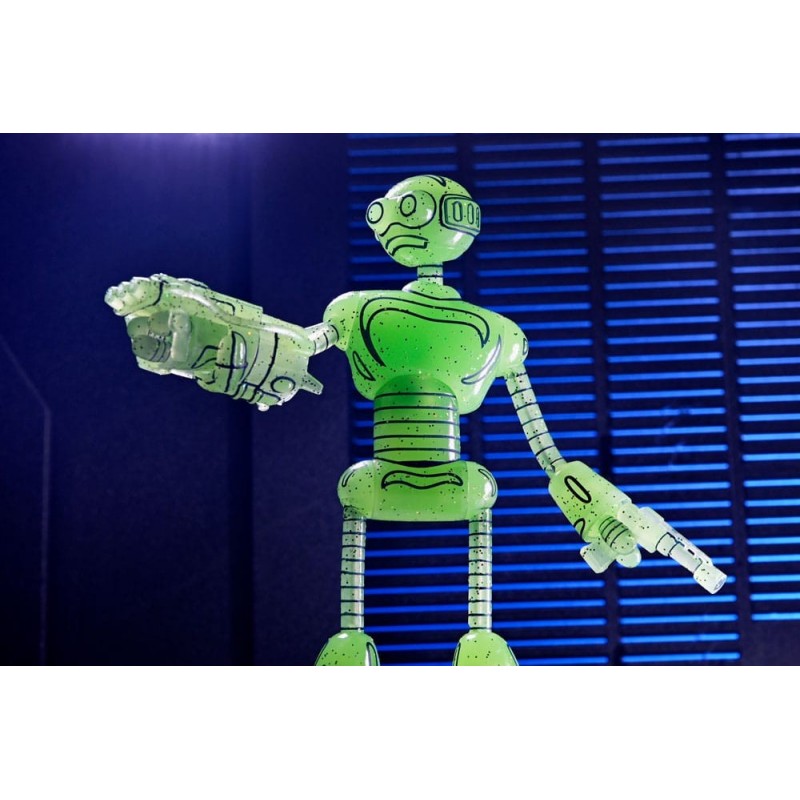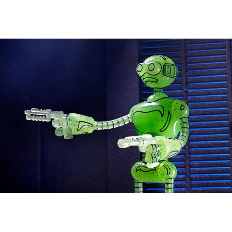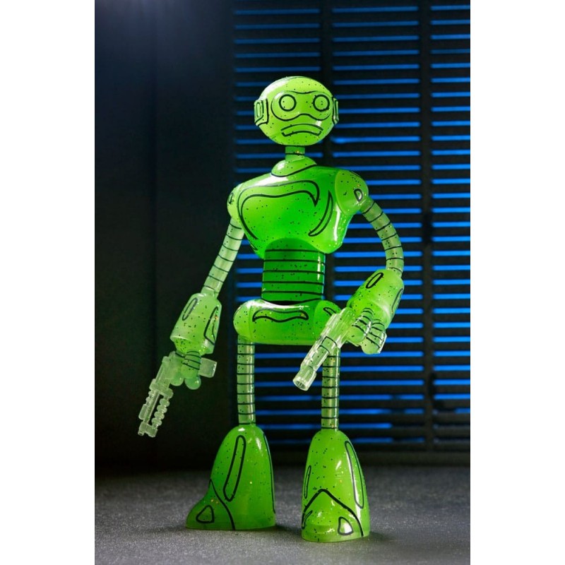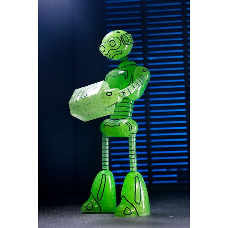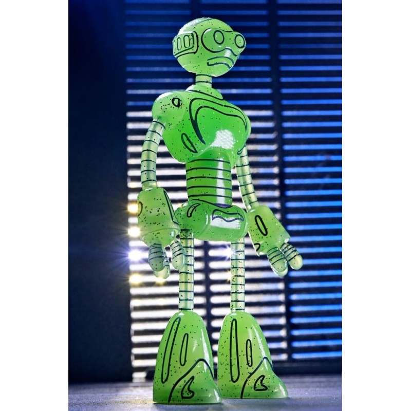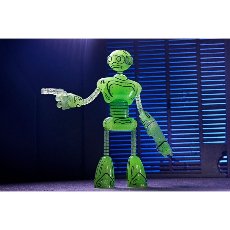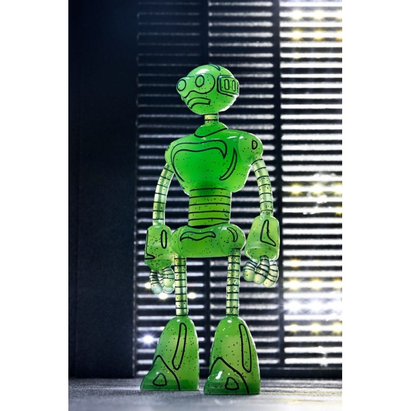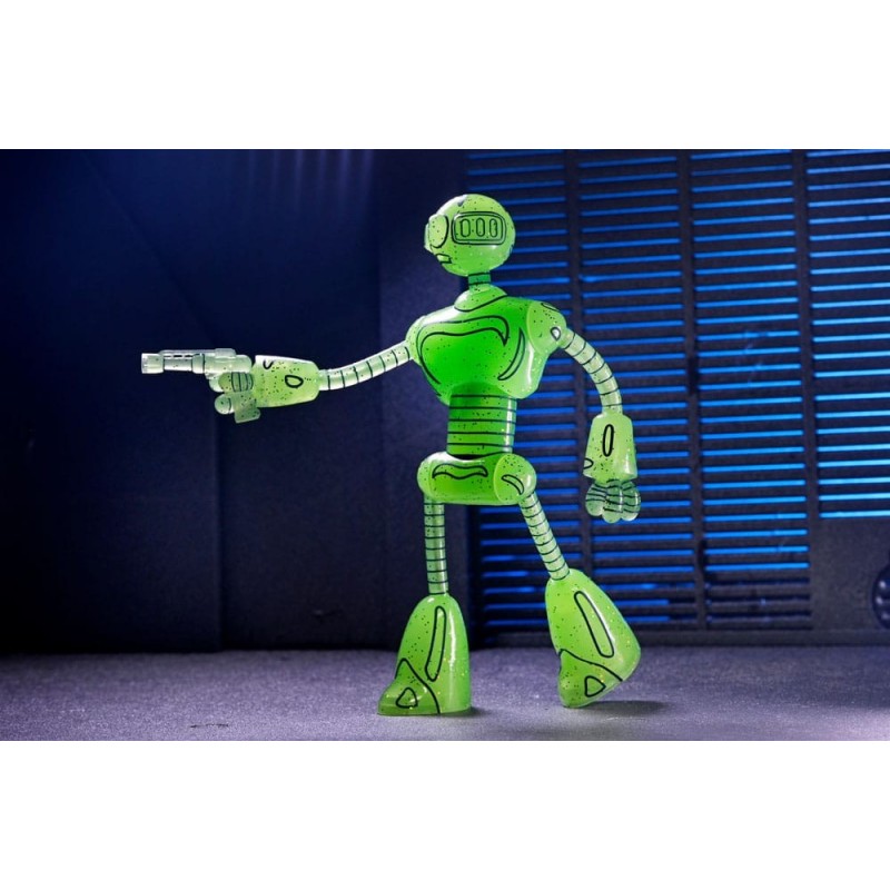Descubre la impactante Figura Transmat Fugitoid GID de 18 cm, una pieza esencial para los seguidores de las Tortugas Ninja y los Mirage Comics. Fabricada por NECA, esta figura está diseñada con un llamativo color verde translúcido que brilla en la oscuridad, aportando un toque único a tu colección.