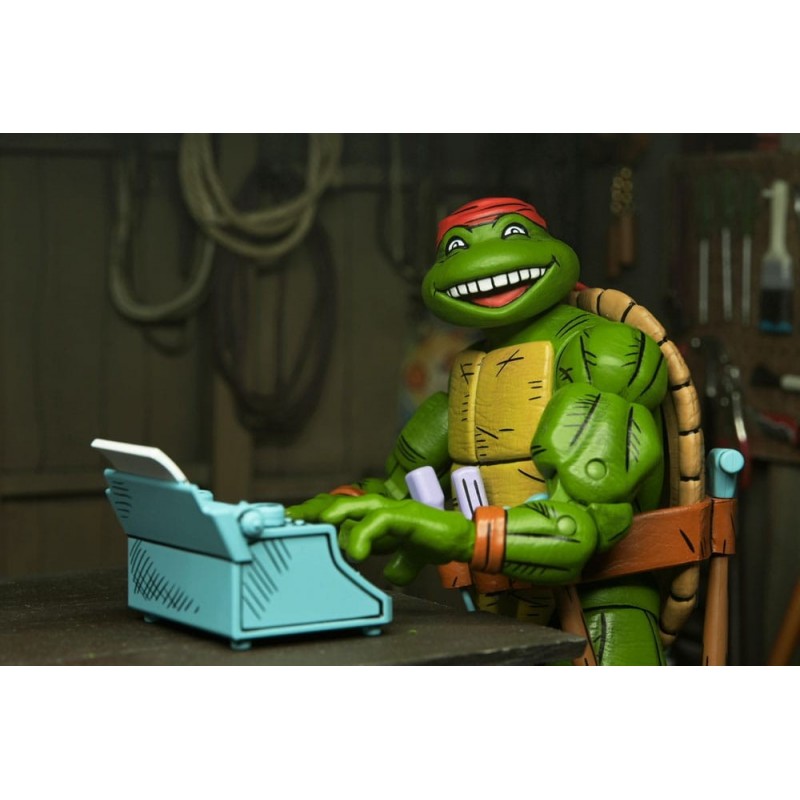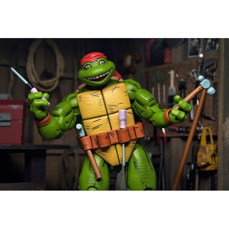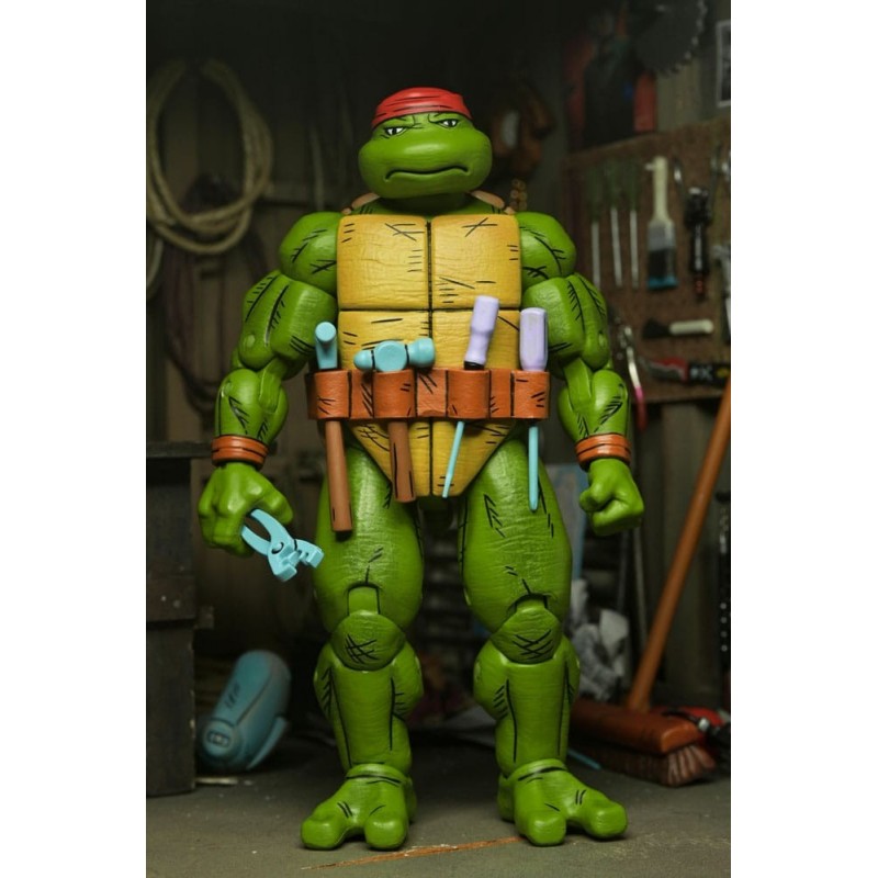 La figura articulada de Donatello de Las Tortugas Ninja, fabricada por NECA, es un homenaje perfecto para los seguidores de estos icónicos personajes. Con una altura aproximada de 18 cm, la figura exhibe a Donatello con su distintivo antifaz rojo y su clásica coraza amarilla, reflejando su característico diseño del cómic. Cada detalle es meticulosamente realizado, desde las texturas de su piel verde hasta los acentos marrones de su cinturón y muñequeras.