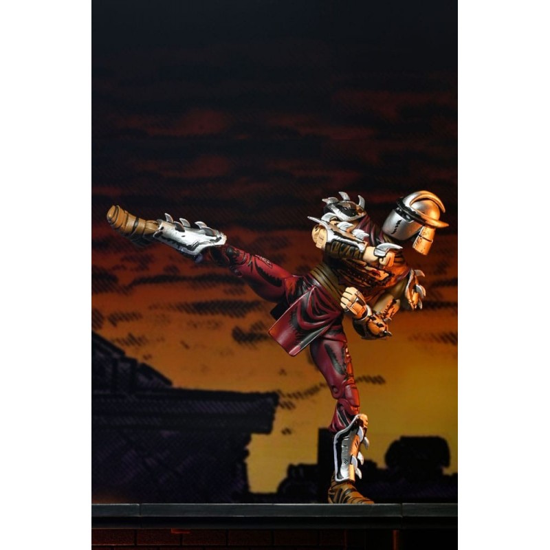 La figura articulada Shredder Battle Damaged de 18 cm captura al icónico villano de las Teenage Mutant Ninja Turtles con un diseño detallado y realista. Fabricada por NECA, esta figura se destaca por su armadura dañada en combate, con detalles en tonos rojizos que resaltan las marcas de batalla. Viene equipada con accesorios, incluyendo casco y armamento, permitiendo crear múltiples escenas de acción.