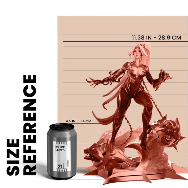 El diseño intrincado de la estatua incluye sus conocidas armaduras biotecnológicas y las características criaturas que la acompañan en el juego. Los colores vibrantes y el acabado detallado hacen que esta pieza destaque en cualquier exposición, convirtiéndola en el regalo perfecto para los aficionados al popular videojuego League of Legends.
