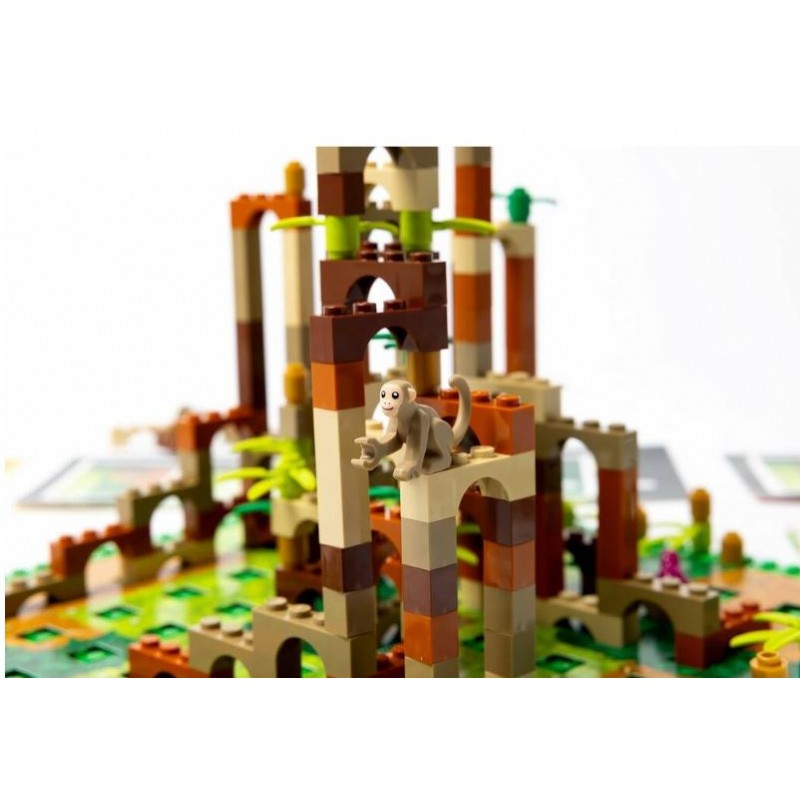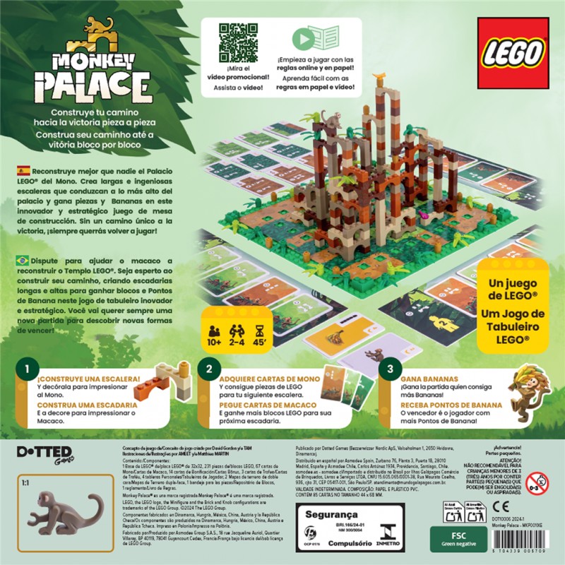 Adéntrate en el mundo de Monkey Palace, un juego de mesa de construcción que combina creatividad y estrategia. Con piezas de LEGO, los jugadores deben construir ingeniosas escaleras para alcanzar la cima del palacio y ganar Bananas. El juego incluye 80 arcos, 80 ladrillos, y 16 columnas para crear estructuras únicas. Decora tus escaleras con hojas de bambú y ladrillos decorativos, e impresiona al mono anfitrión.