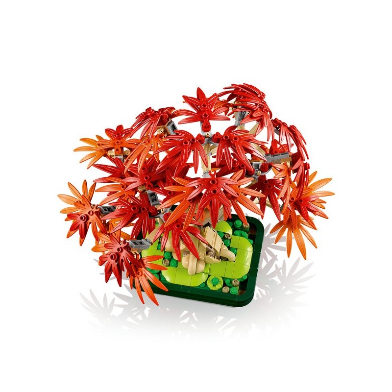 El set LEGO® Bonsái de Arce Rojo Japonés es una pieza de arte botánico diseñada para adultos que combina la belleza de la naturaleza con la creatividad de los ladrillos LEGO. Con 474 piezas, este kit permite construir un árbol de bonsái con hojas en cálidos tonos rojos y ámbar, complementado por una elegante maceta verde oscuro.