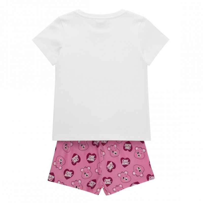 Este pijama corto de Care Bears es la elección perfecta para las noches de verano. Confeccionado en 100% algodón, asegura suavidad y comodidad para los más pequeños. El conjunto incluye una camiseta blanca con un diseño alegre de osos de colores y el mensaje 'Be You', junto con unos pantalones cortos rosas estampados con caritas de Care Bears.
