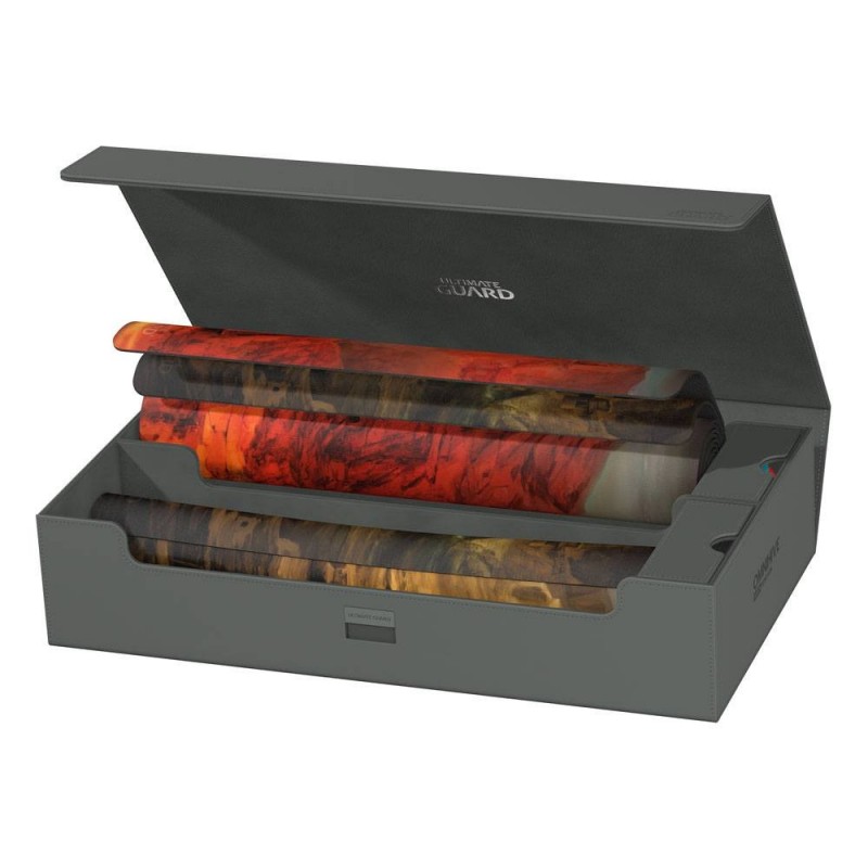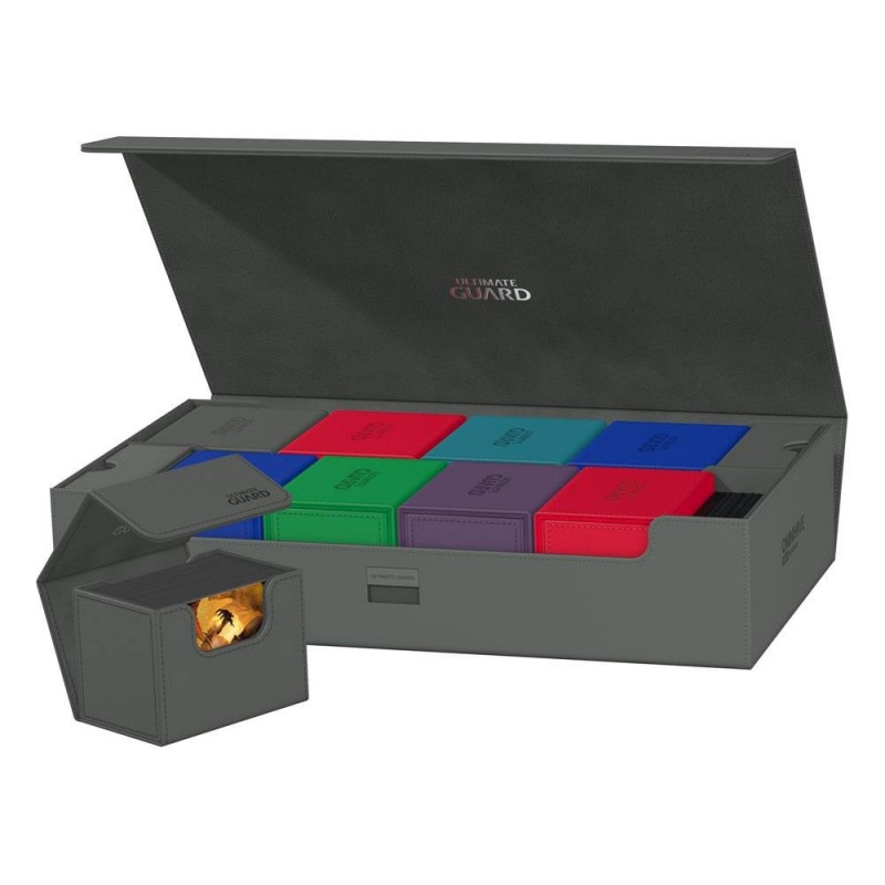 Su diseño modular permite combinarla con otros productos de Ultimate Guard, mientras que las bandejas magnéticas extraíbles ofrecen versatilidad para organizar tus cartas, mazos o tapetes de juego. Además, el fuerte cierre magnético con el mecanismo de bloqueo ZnapClaw asegura que todo permanezca en su lugar.
