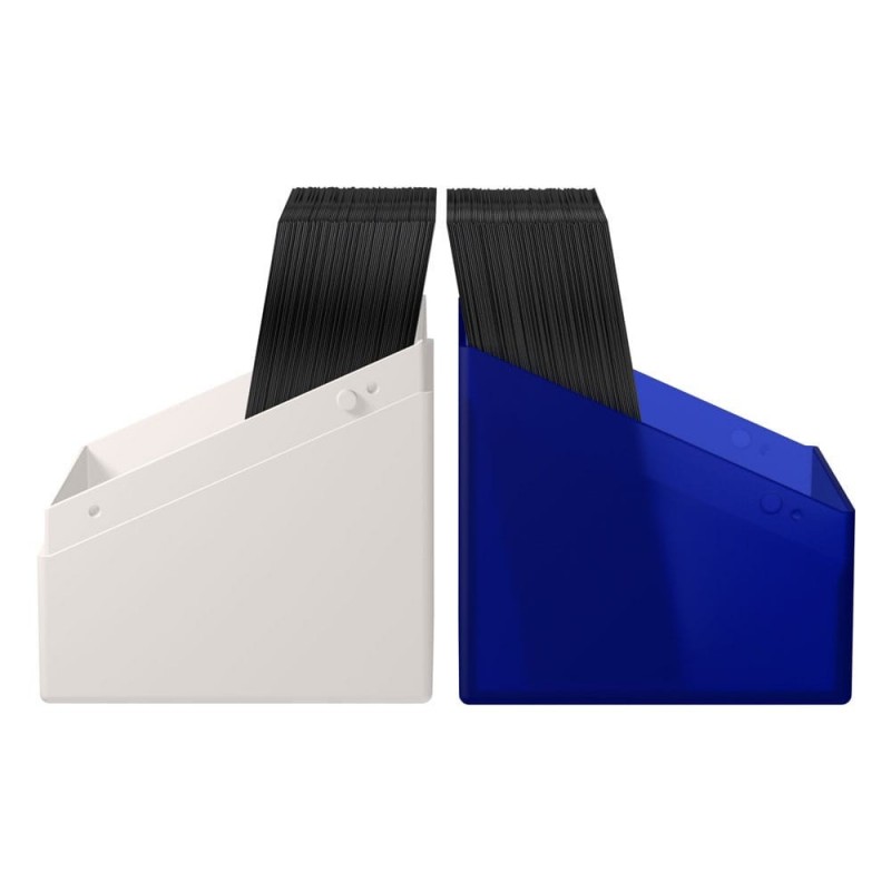 La deck box proporciona un acabado sedoso y suave al tacto, ideal para los jugadores que aprecian tanto el estilo como la funcionalidad. Con capacidad para 100 cartas doblemente enfundadas, es perfecta para proteger tu mazo Commander bicolor.