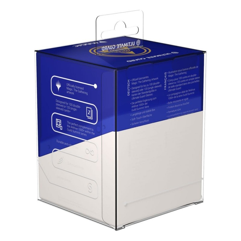 Descubre el Ultimate Guard Boulder 100+ de la serie Guild Summit, diseñado con elegancia para los verdaderos fanáticos de Magic: The Gathering. Este modelo, dedicado al gremio Azorius, destaca por su color azul translúcido combinado con detalles en blanco, ofreciendo un toque sofisticado gracias a su escudo dorado en la parte superior.