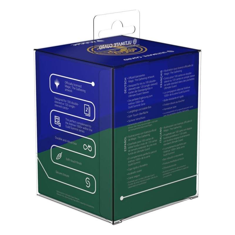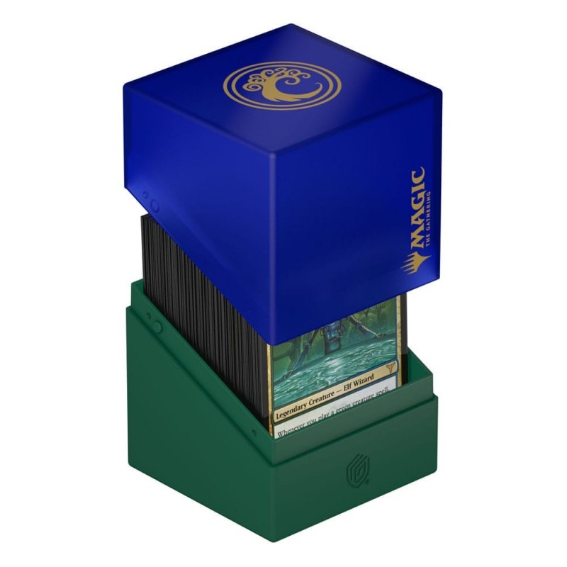 Descubre la Ultimate Guard Boulder 100+ de Magic: The Gathering, en la edición especial "Guild Summit" dedicada al gremio Simic. Esta elegante caja de almacenamiento es más que un accesorio, es una declaración de tu alianza en el universo de Rávnica. Con un acabado en azul y verde, cada Boulder resalta el escudo dorado del gremio Simic, aportando un toque de distinción.