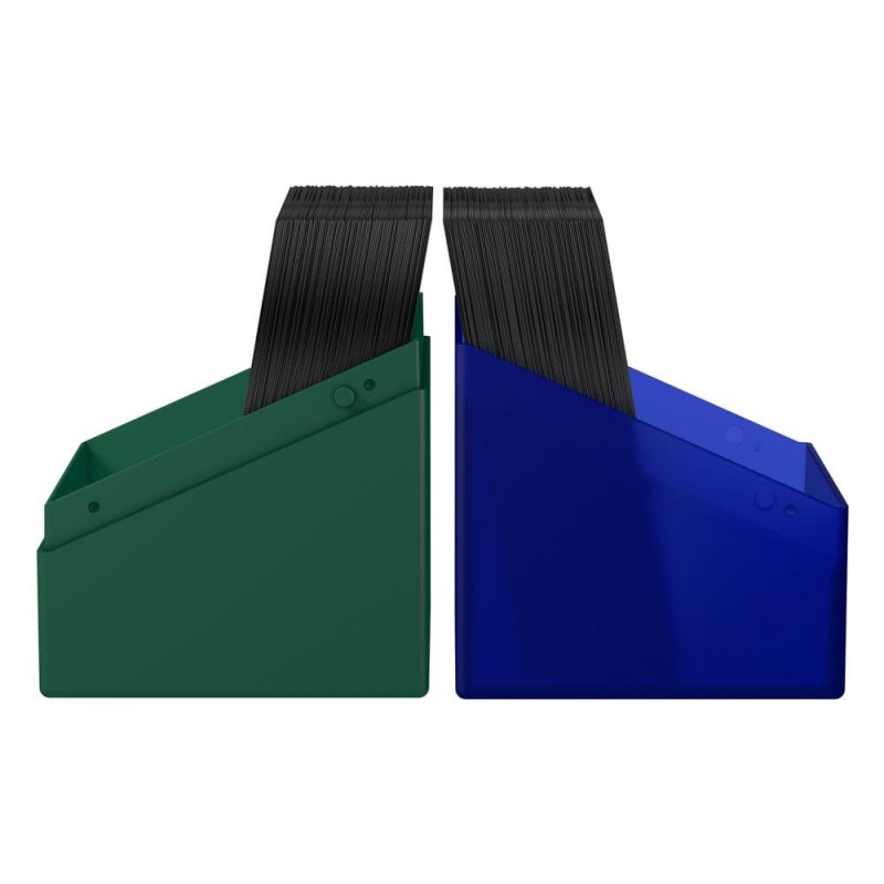 Fabricada con materiales de alta calidad, esta deck box tiene un acabado sedoso y suave al tacto. Capaz de albergar hasta 100 cartas con doble funda, es ideal para proteger tu mazo Commander bicolor. Su diseño robusto garantiza la seguridad de tus cartas en cada enfrentamiento.