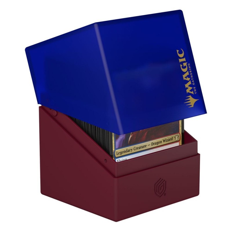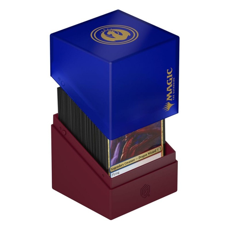 Descubre la sofisticación del Ultimate Guard Boulder 100+ "Guild Summit" edición Izzet, diseñado para los entusiastas de Magic: The Gathering. Esta deck box presenta un diseño bicolor en azul y rojo con el escudo dorado del gremio Izzet, evocando la energía y creatividad característica de este clan.