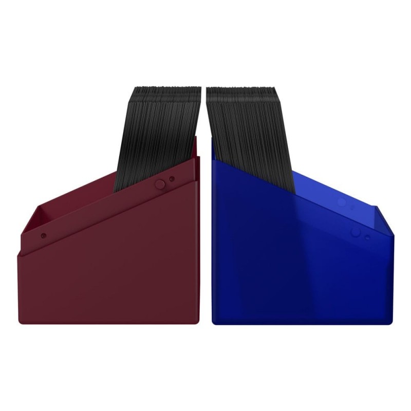 Fabricada con un material semitransparente y un acabado sedoso al tacto, ofrece una capacidad para 100 cartas doblemente enfundadas, ideal para proteger tu mazo Commander bicolor. Su estructura robusta y cierre seguro aseguran la protección óptima de tus cartas más preciadas.