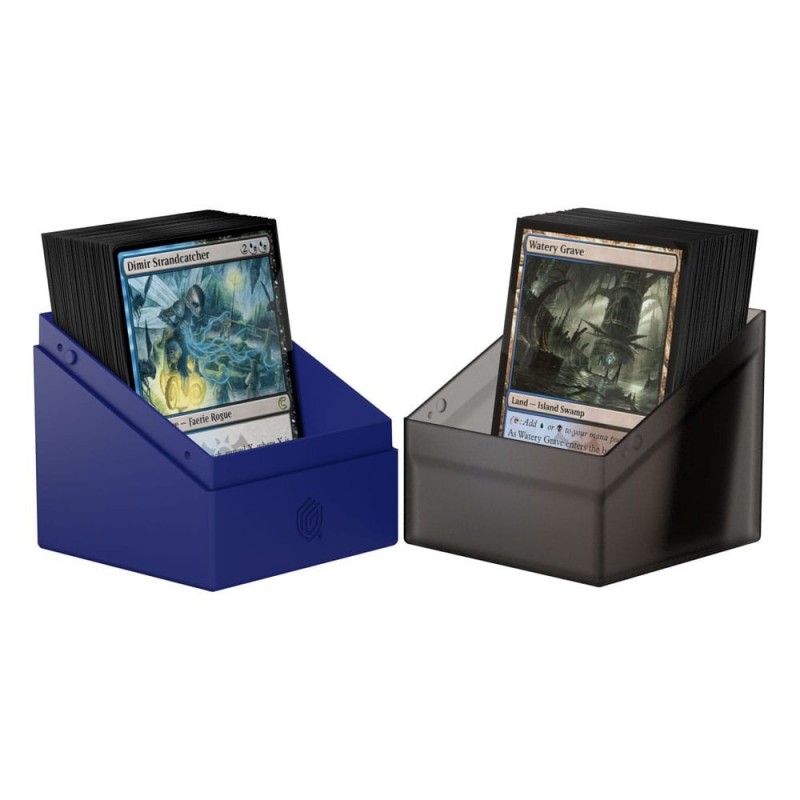 El Ultimate Guard Boulder 100+ es un accesorio imprescindible para los fans de Magic: The Gathering que buscan un almacenamiento elegante y seguro. Con un diseño semitransparente y un acabado sedoso, esta deck box destaca por su escudo dorado del gremio Dimir, reflejando la intriga y el poder de tu facción favorita de Rávnica.