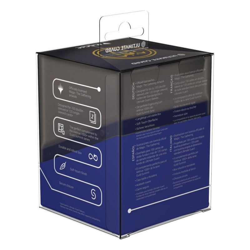 Este Boulder tiene capacidad para almacenar 100 cartas con doble funda, siendo ideal para tu mazo Commander bicolor. La caja es robusta y ofrece un cierre seguro, garantizando que tus cartas estén siempre protegidas mientras te desplazas. El diseño de la serie "Guild Summit" combina funcionalidad con un estilo inigualable.