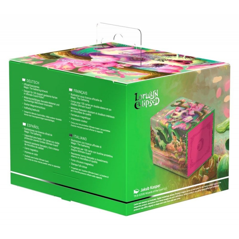 El Sidewinder 100+ Xenoskin de Ultimate Guard es un deck box de lujo para Magic: The Gathering. Ofrece protección excepcional con su material Xenoskin resistente y un interior de microfibra de alta calidad. Equipado con un cierre magnético fuerte, este producto asegura un acceso fácil a tus cartas. Tiene capacidad para 100 cartas con doble funda usando fundas Ultimate Guard*, y cuenta con ilustraciones con licencia oficial de la colección "Lorwyn Eclipsed". Ideal para formatos como Commander/EDH, Modern y Standard, este deck box es un complemento perfecto para otros productos de almacenamiento de Ultimate Guard.