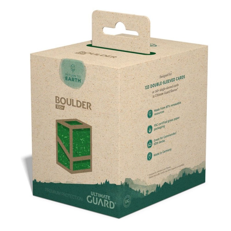 El Ultimate Guard Return To Earth Boulder Deck Case 133+ en color verde es la solución perfecta para los amantes de los juegos de cartas que buscan una opción ecológica y sostenible. Fabricado con un 87% de recursos renovables, esta caja rígida y duradera ofrece un almacenamiento seguro para tus mazos de cartas. Su diseño modular está pensado para combinar perfectamente con otros productos de Ultimate Guard, brindando una experiencia de juego óptima.