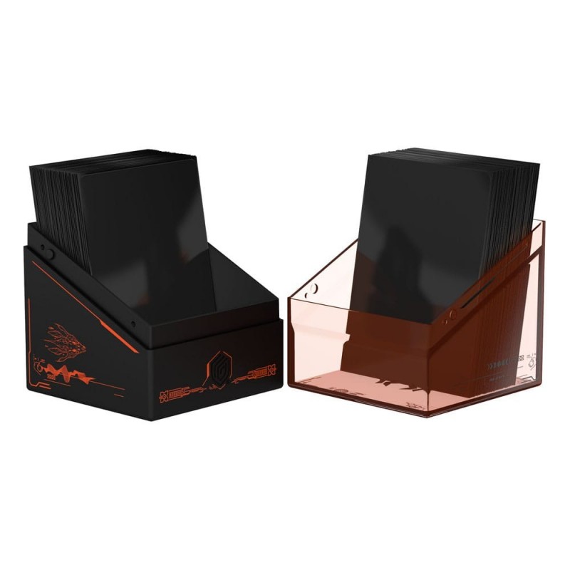 La caja para mazos Boulder 100+ es el complemento perfecto para los amantes de Magic: The Gathering. Esta caja destaca por su diseño robusto en colores negro y ámbar, con ilustraciones en cada lado que evocan la esencia de 'Edge of Eternities'.