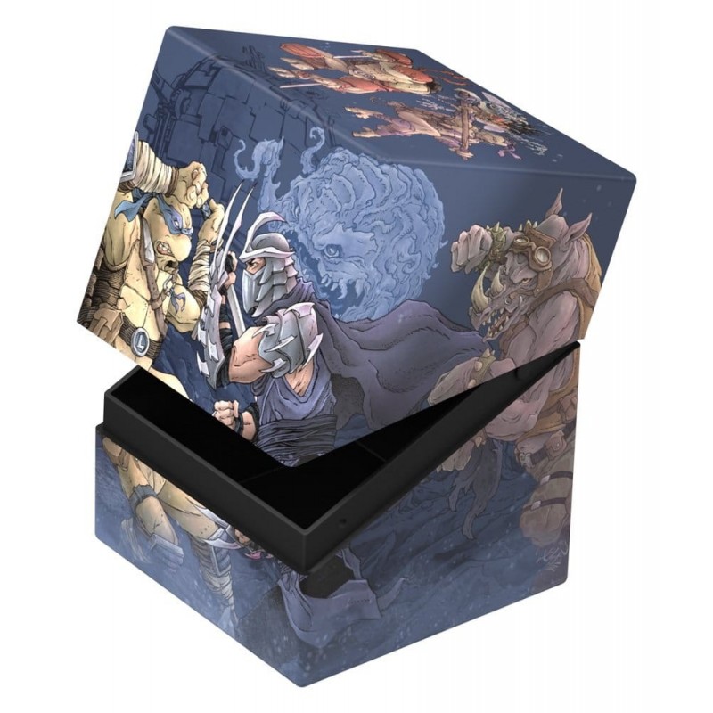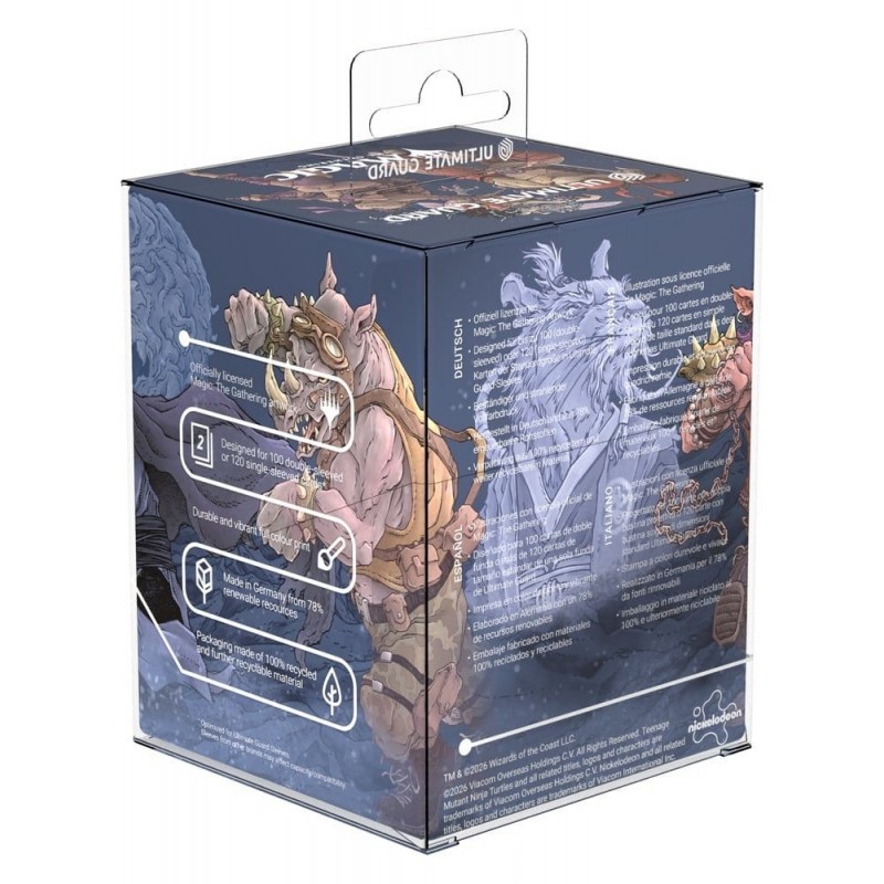 El diseño presenta una impresionante ilustración a todo color de la batalla en el Technodrome, con personajes icónicos de Teenage Mutant Ninja Turtles. Su durabilidad y cierre seguro garantizan la protección de tus cartas más preciadas. Además, viene en un embalaje completamente reciclado y reciclable. Compatible con otras cajas de Ultimate Guard, como Arkhive y Superhive, es una adición esencial para cualquier coleccionista.